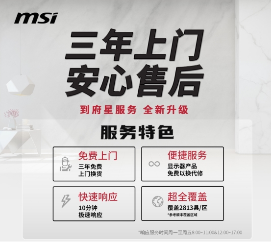 3.免费换新:确认为产品故障且在服务期内(凭发票购买日期起三年;无发票则按出厂日期次月起算),微星即安排免费上门更换良品机,同步完成故障件回收,全程高效无忧。