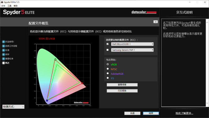 作为一款2K分辨率的专业作图显示器,从官方数据来看,戴尔U2520D还拥有350 cd/m²(典型值)亮度,1000:1对比度,5ms响应时间以及高达10.7亿的色数,并在出厂时就已校准为 99% sRGB,精度为 Delta-E < 2。最为重要的是这款显示器还支持95%DCI-P3影院级显示效果和HDR400认证,色彩生动艳丽,图像立体而逼真。所以接下来我们使用红蜘蛛Spyder 5 Elite校色仪来检测一下这款戴尔U2520D显示器的色域和其它性能指标,看看到底怎么样。