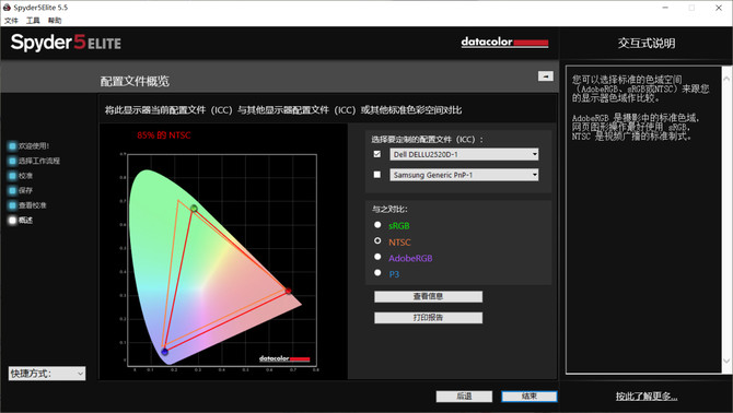 办公室白天环境,首先将显示器预热超过一小时,运行Spyder 5 Elite进行校色,最终获得的数据为:100%的sRGB,85%的NTSC,87%的AdobeRGB和97%P3标准色域,各项指标均略高于官方参数,可见其性能表现非常优秀。