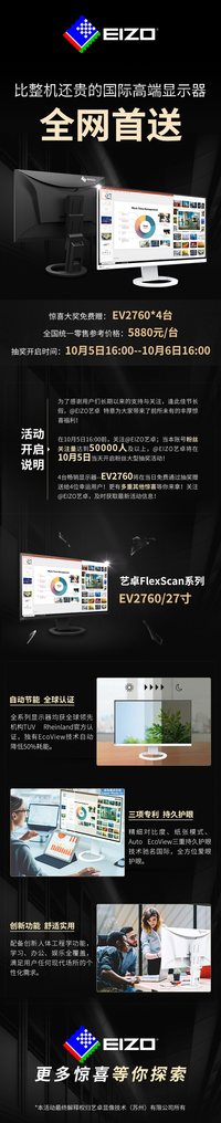 关关 · 2022-09-29 10:15 - 高端显示器品牌“EIZO艺卓”,全网首送显示器活动震撼开启!