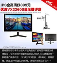对于普通消费者来说,显然拥有更好色彩表现与超大可视角度的广视角显示器更加值得购买。今天来到评测室的就是这样一款超值广视角机型,它就是优派最新推出的液晶显示器——VX2260S-LED,21.5英寸全高清、IPS广视角面板、LED背光、6.8mm超薄的机身,再加上899元的上市价格,可以说性价比非常高。